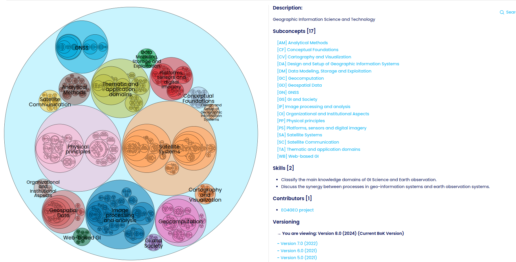 The circular map shows that most courses fall into ENV, GIS, and LNG. In terms of numbers, the LNG area is unbalanced compared to GIS and ENV, since one large circle for a C1 English course (240h) takes up the same space as three smaller GIS courses. A limitation of the circle tree map is that it doesn’t always reflect meaning well, because a GIS course could also relate to ENV, for example when using biodiversity data.